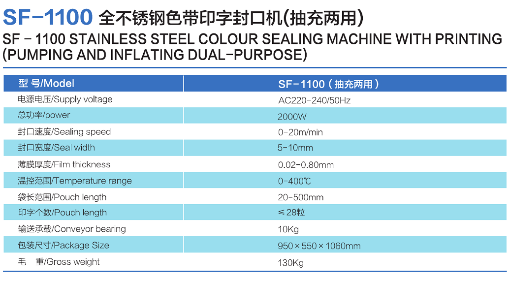本產品是一款強大吸引力, 排氣裝置將袋子內的空氣排出,防止產品的流動,投入脫酸材料及保持新鮮劑,可延長有效期,能達到半真空。印字、封口同時完成。